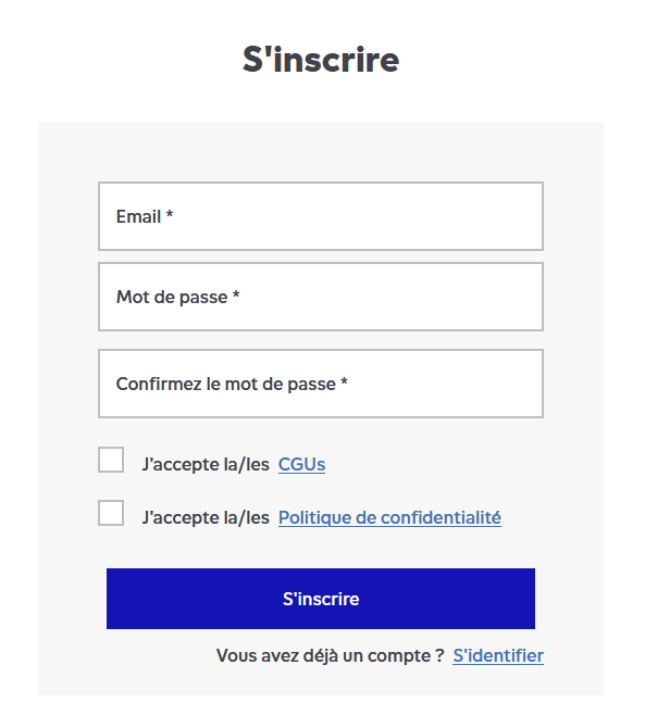 - Renseignez votre adresse e-mail et un mot de passe qu'il faudra confirmer