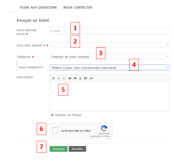 - Catégorie merci de sélectionner "Gestion de mon compte"