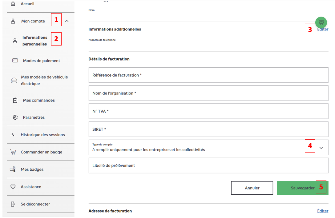 Sur votre espace client, merci de renseigner le type de votre compte :