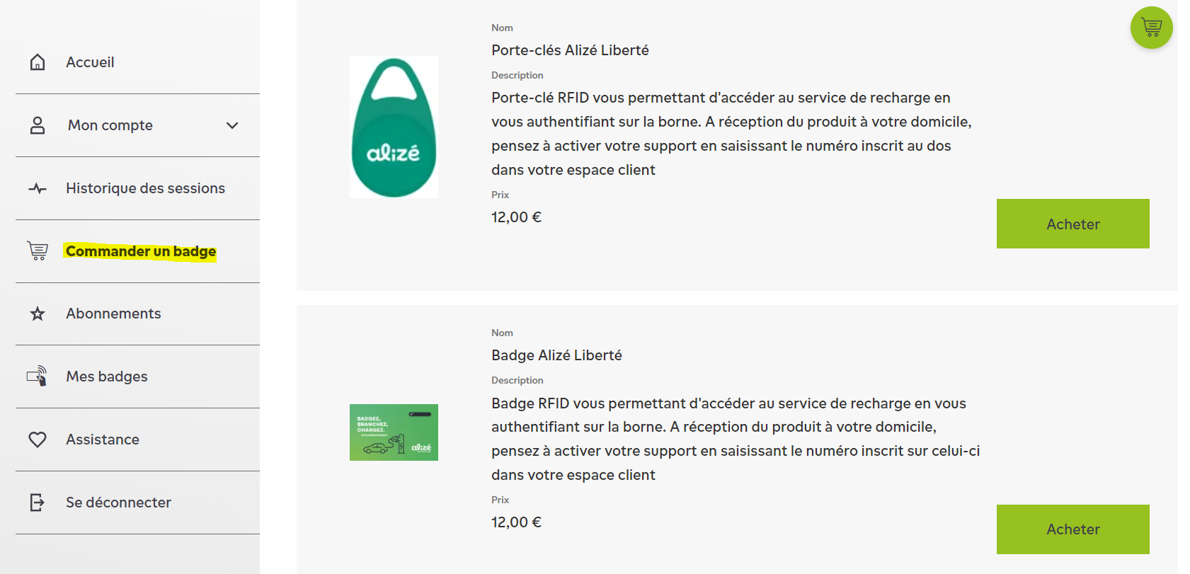 Afin de commander un ou plusieurs badges :