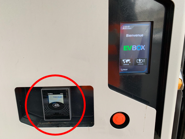 Attention, seulement quelques bornes le permettent aujourd'hui. Pour savoir si une borne dispose de cette option, un terminal de paiement sans contact est visible sur sa face avant. Vous pouvez identifier ces bornes grâce à ce logo apposé sur le lecteur spécifique :